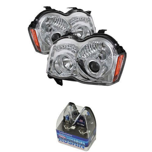 Carpart4u Jeep Grand Cherokee Halo LED Projector Headlights & Koshin Platinum White Halogen Light Bulbs package . This product description is for Jeep Grand Cherokee 08-10 Halo LED ( Non Replaceable LEDs ) Projector Headlights - Chrome