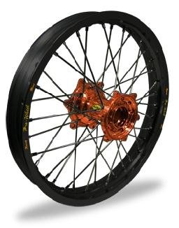FeaturesWheel sets include generation II rims and hubsRims are constructed from 7116-1 heat treated aluminumHubs are constructed from 6061 T-6 billet aluminumEach hub is model specific and uses your OEM rotors and sprocketsAll wheel sets are complete with bearings, seal and spacers Pro-Wheel Supermoto Front Wheel Set 17x3.50 Black Rim/Orange Hub 26-31062 HUB/RIM?